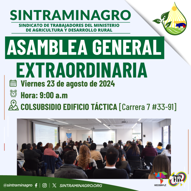 Inicio Noticias y Actualidad La Junta Directiva de Sintraminagro convoca a todos sus afiliados a la... Noticias y Actualidad La Junta Directiva de Sintraminagro convoca a todos sus afiliados a la Asamblea General Extraordinaria. Por admin - agosto 20, 2024 187 0 FacebookTwitterPinterestWhatsApp